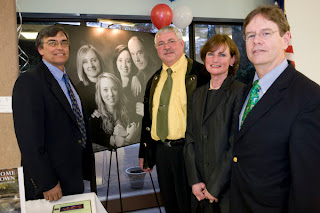 In the photo, from the left: Auctioneer and philanthropist Steven Desmarais, C1M Photographer Walter Schnecker, his wife and supporter Marion Schnecker and Souhegan Valley Chamber of Commerce president Rick Boyd.