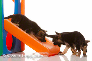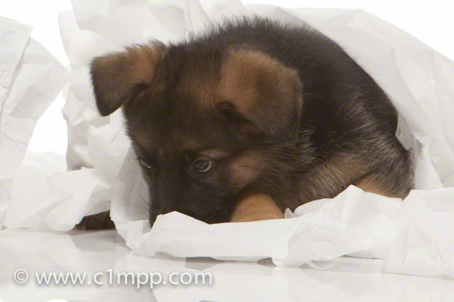 1 roll of toilet paper, 2 water bottles, 3 puppies and oodles of fun!